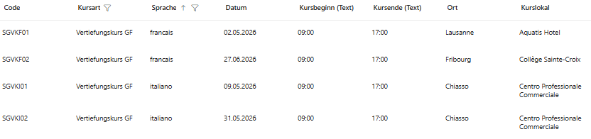 2me année: Le cours d’approfondissement (VK)