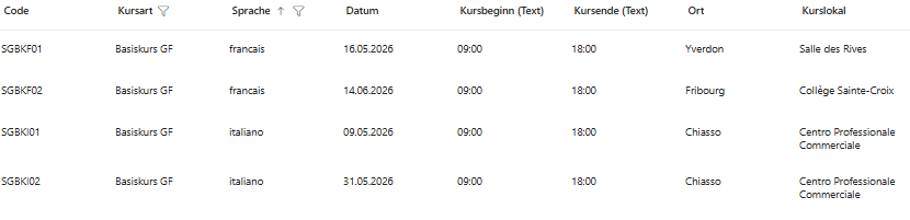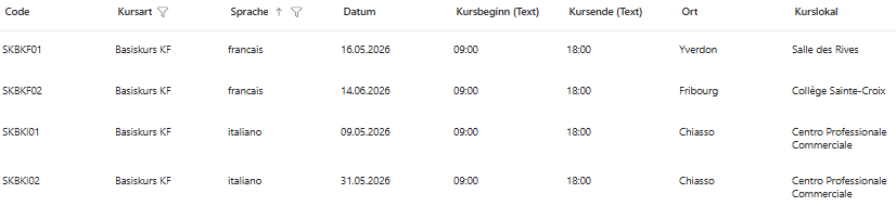 Les dates des cours pratiques seront publiées à un moment ultérieur. Ils ont généralement lieu en août et début septembre.